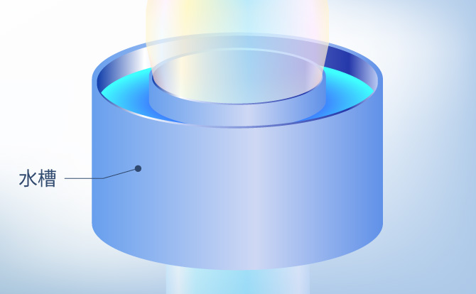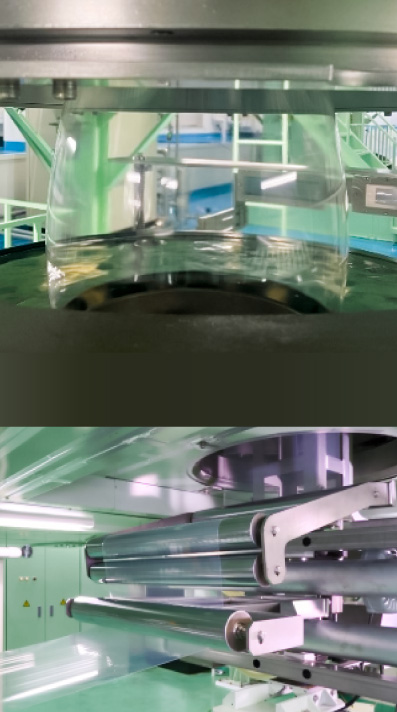 当社のインフレーションフィルムは、溶融樹脂を急冷させるために水冷方式を採用しています。
