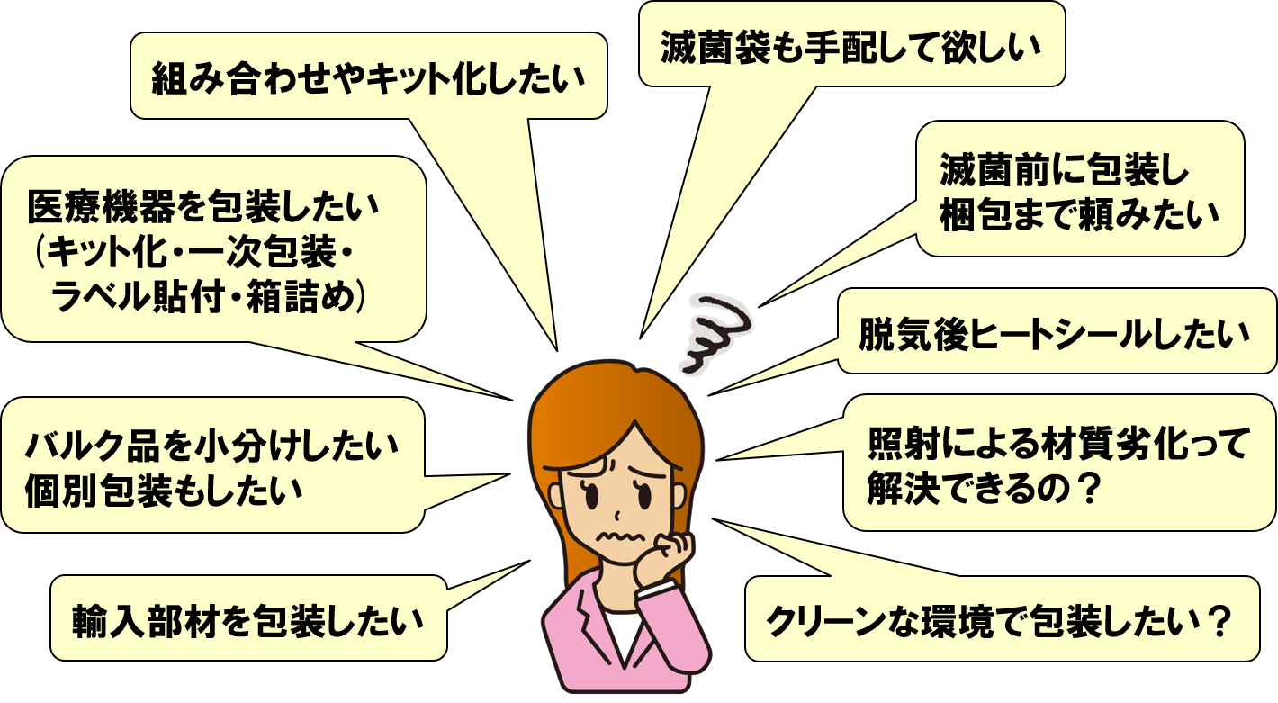 ・耐放射線包装材や各滅菌方法に合わせた滅菌包装材、容器・袋の手配