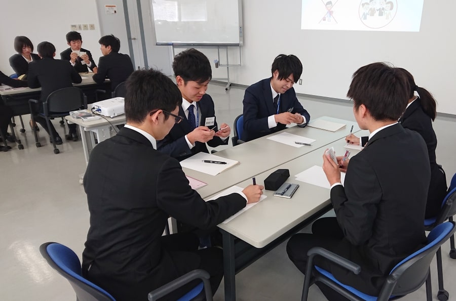 新入社員研修は、会社の歴史、各部門の役割についての理解、社会人としての心得、スピーチトレーニングなど、講義だけでなくロールプレーイングを取り入れたカリキュラムを実施しています。研修期間は2週間ですが、同じ時間・同じ空間を共有することで、今後の大切な財産となる同期の絆を深めています。